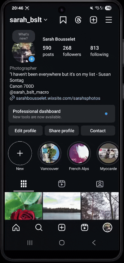 Sarah is a frequent Instagram user who needs an easier and more visible access to her “Saved” photos because she wants to easily view her various photos collections.