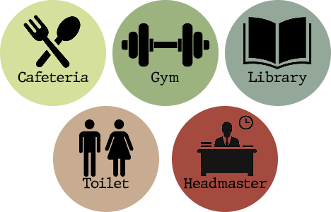 The prompts first suggested to create icons for the school. More might be created later but for now, only 5 are created for 5 of the most important areas of the school: the cafetaria, the gym, the library, the toilet and the headmaster’s office.