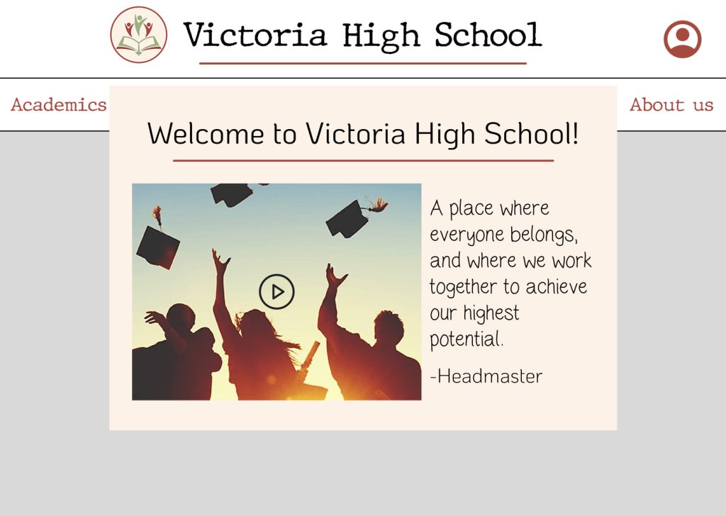 - One that would be displayed the first time a student visit the website,with a generational quote from the headmaster, that has been in place for 30 years.